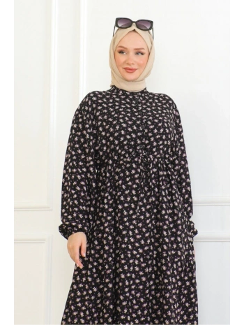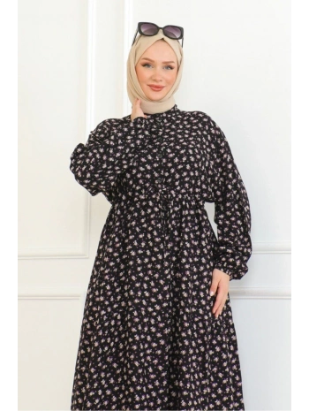 Çiçek Desenli Bağlamalı Viskon Elbise - Mor