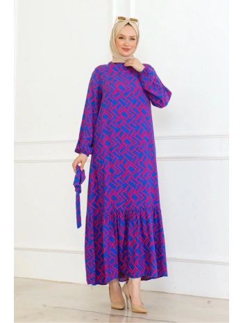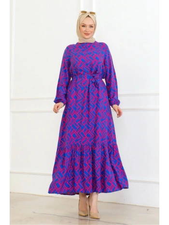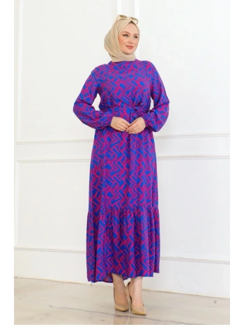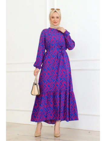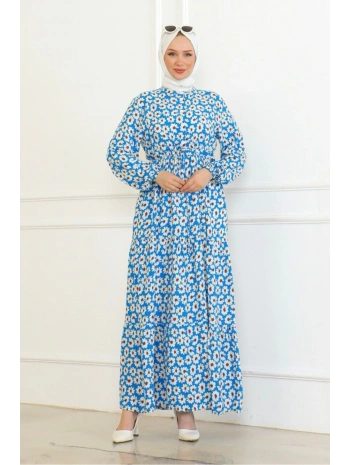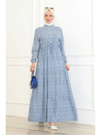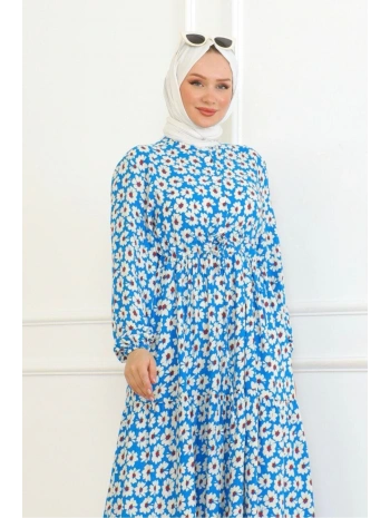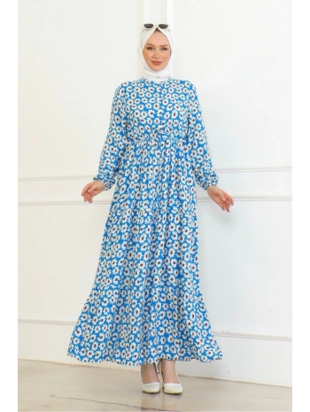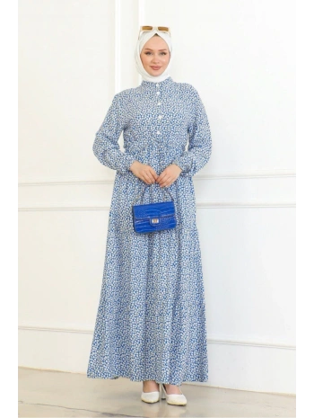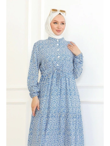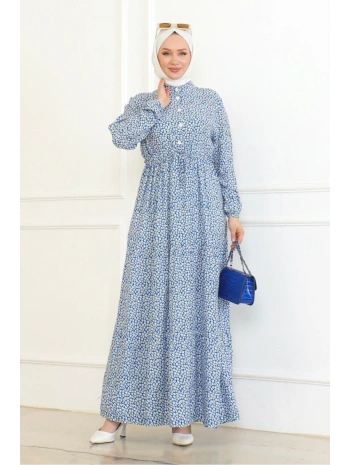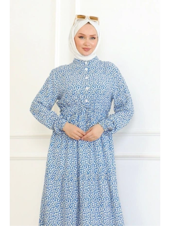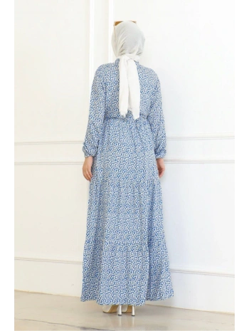 Çiçek Desenli Önü Bağlamalı Elbise / Mavi