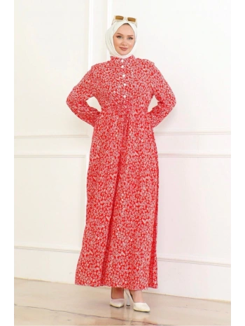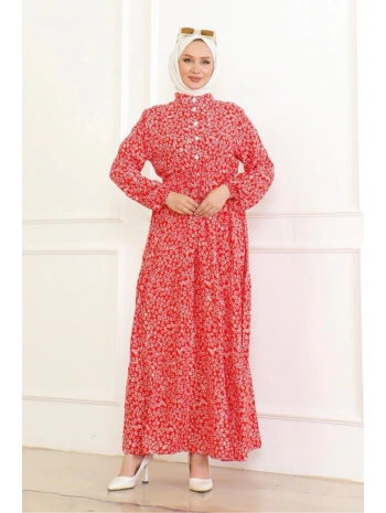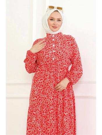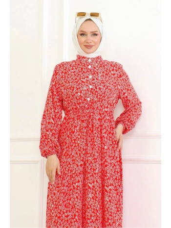 Çiçek Desenli Önü Bağlamalı Elbise / Siyah-kırmızı