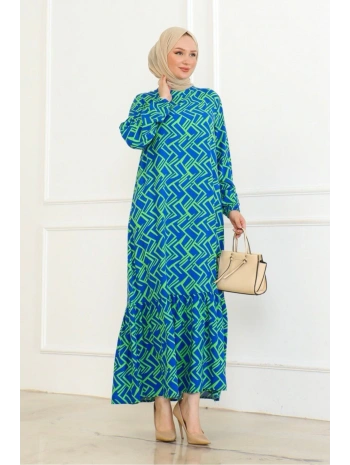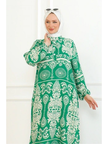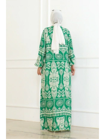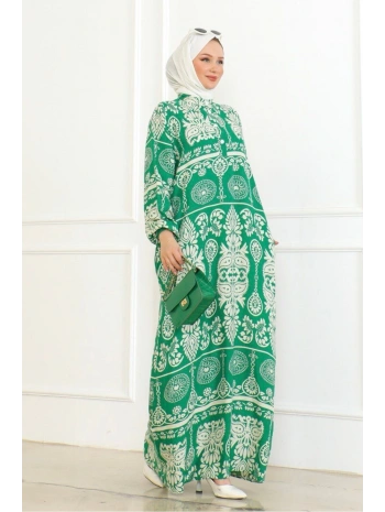 Desenli Viskon Elbise - Yeşil
